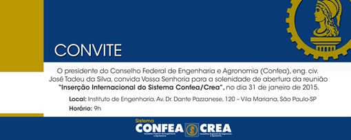 Após encerramento da primeira Sessão Plenária do ano, os conselheiros federais reúnem-se neste sábado (31/1), durante reunião-seminário que tratará sobre a inserção internacional do Sistema Confea/Crea. O evento é realizado em São Paulo e é restrito a conselheiros federais.