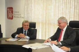 Rodrigo Janot e José Tadeu da Silva, presidentes do Conselho Nacional do Ministério Público (CNPM) e do Conselho Federal de Engenharia e Agronomia (Confea), assinaram acordo de cooperação visando à adaptação dos prédios públicos às exigências da Lei de Acessibilidade – 10.048/2000 - que garante facilidade de acesso às pessoas portadoras de algum tipo de dificuldade de locomoção e/ou deficiência.