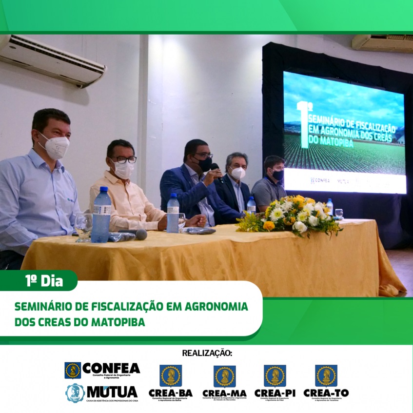 Foi iniciado na manhã desta terça-feira (16), o 1º Seminário de Fiscalização em Agronomia dos Creas da região do Matopiba, em Barreiras. O evento acontece até esta quarta (17), onde estão sendo discutidas as experiências das fiscalizações dos Creas do Maranhão, Tocantins, Piauí e Bahia. O evento conta ainda com representantes dos Creas Goiás, Pará e Distrito Federal.