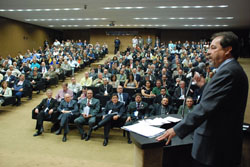 O presidente do Confea, Marcos Túlio de Melo, abriu os trabalhos com a verificação do quorum regimental, que é de 3/5 do total de delegados. Havia, no início da sessão, mais de 200 delegados presentes.