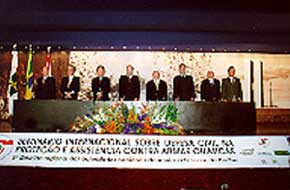 governo brasileiro  despertada a partir do atentado de 11 de setembro do ano passado às Torres Gêmeas, em Nova York - com a segurança dos prédios públicos e da população, teve início no dia 25 de março, em Brasília, o Seminário Internacional sobre Defesa Civil na Proteção e Assistência contra Armas Químicas. O evento contou com a participações dos Ministros de Ciência e Tecnologia, Ronaldo Sardenberg e da Integração Nacional, Ney Suassuna. O Sistema Confea/Crea foi representado, na oportunidade, pelo vice-presidente do Conselho Federal, eng.º agrônomo Jaceguáy Barros e pelo Chefe de Gabinete, eng.º agrônomo, Maçao Tadano.
