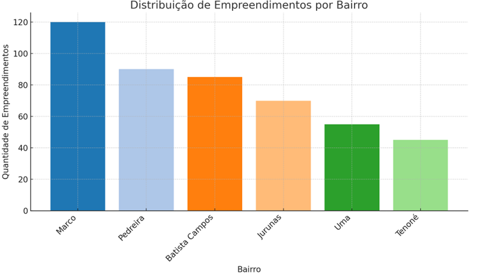 A concentração de empreendimentos nos bairros de Marco, Pedreira e Batista Campos explica o maior volume de inspeções nessas regiões. Tais bairros, caracterizados por adensamento urbano e presença de edificações com mais de 20 anos, demandam priorização em políticas públicas de manutenção predial.