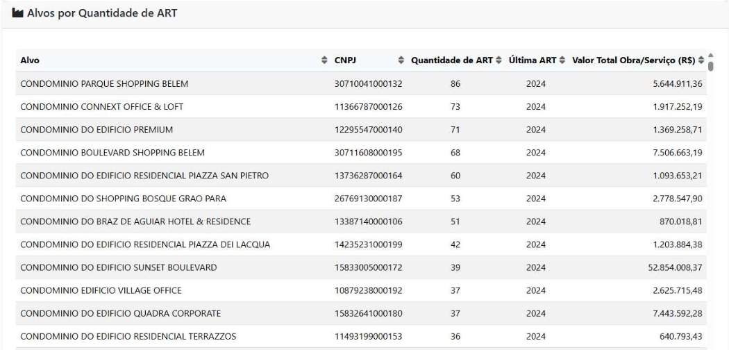 Finalizadas as visitas em campo, iniciamos o monitoramento do registro de ARTs dos empreendimentos alvos da presente força tarefa nacional de fiscalização.