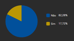 Análise: Neste gráfico, a maioria dos respondentes (56,65%) executa o serviço técnico de tratamento fitossanitário destinado à preservação e conservação dos grãos. Os 43,35% de "Não" indicam que uma parcela considerável ainda não está envolvida com esse tipo de serviço. O tratamento fitossanitário é uma medida fitossanitária determinada pelo Ministério da Agricultura, Pecuária e Abastecimento - MAPA e realizada apenas por empresas credenciadas, com o objetivo de assegurar que os vegetais, partes de vegetais e seus produtos, bem como embalagens e suportes de madeira, nas operações de exportação e importação, encontram-se livres de pragas, desta forma, requer profissionais habilitados e empresas com conhecimento técnico para garantir que os produtos vegetais estejam livres de pragas e em conformidade com as exigências fitossanitárias.