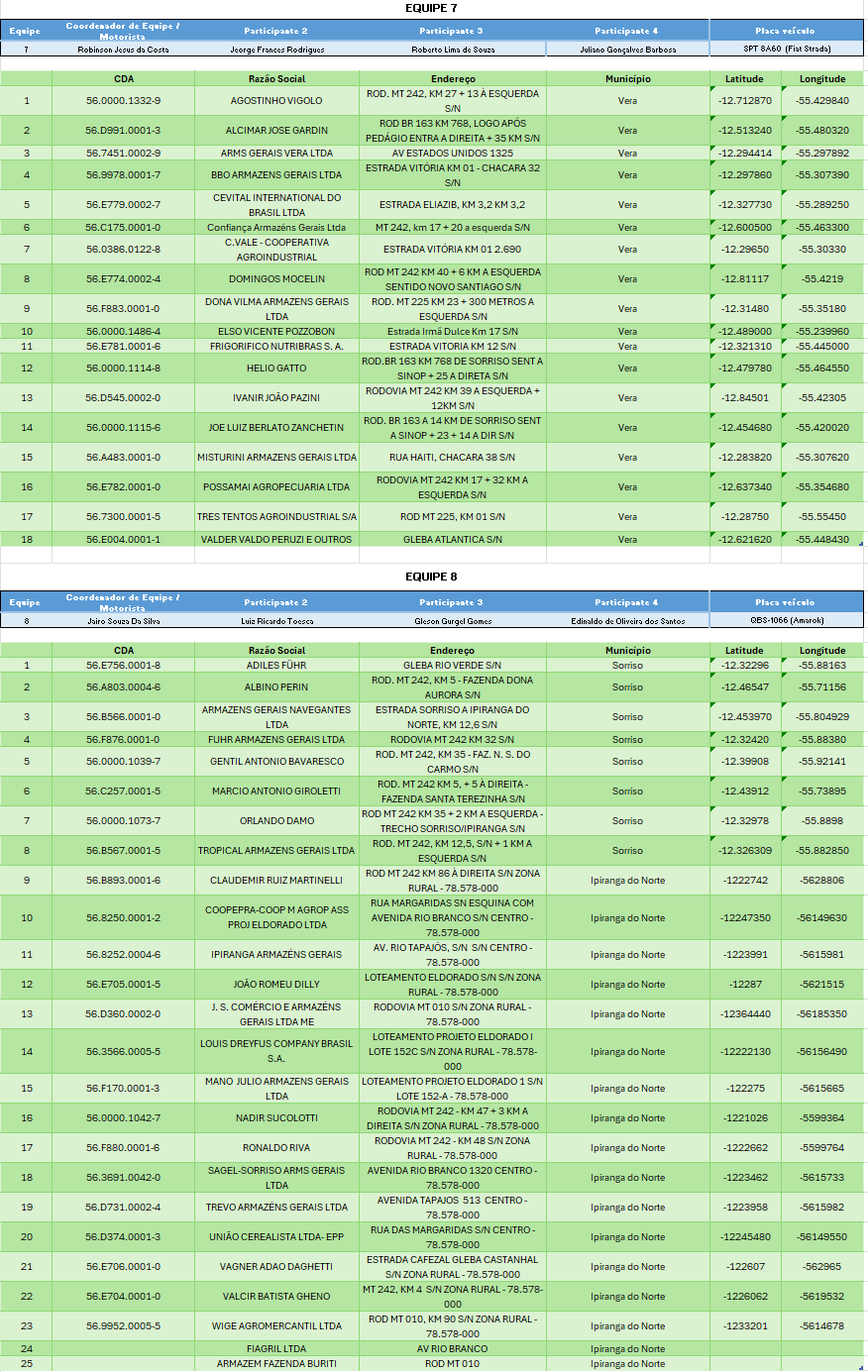 Identificar e Fiscalizar: Abranger o maior número possível de alvos (armazéns e estabelecimentos agrícolas) na região de Sinop/MT, conforme mapeamento prévio.