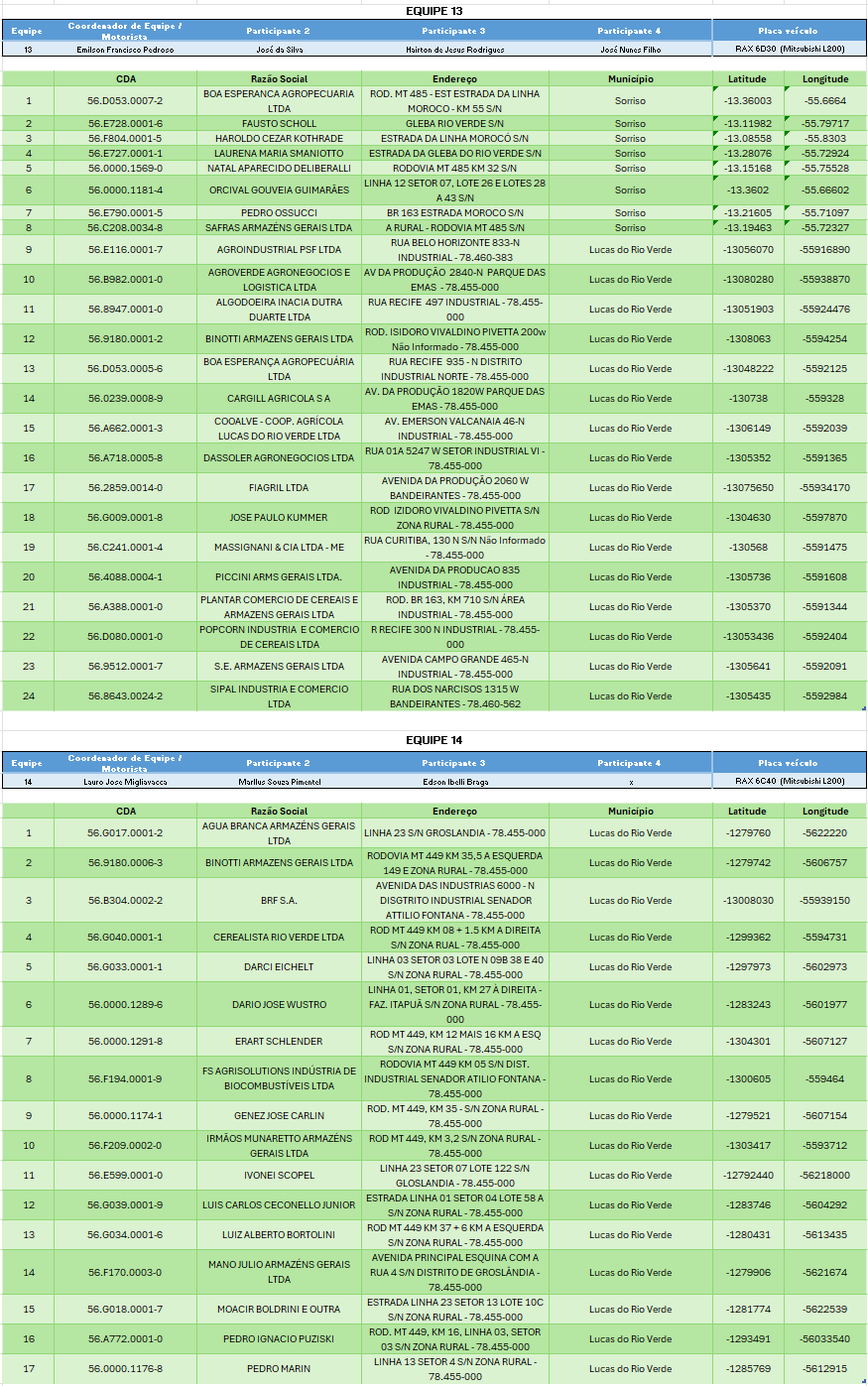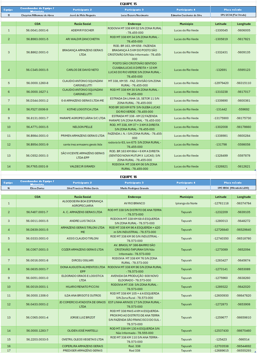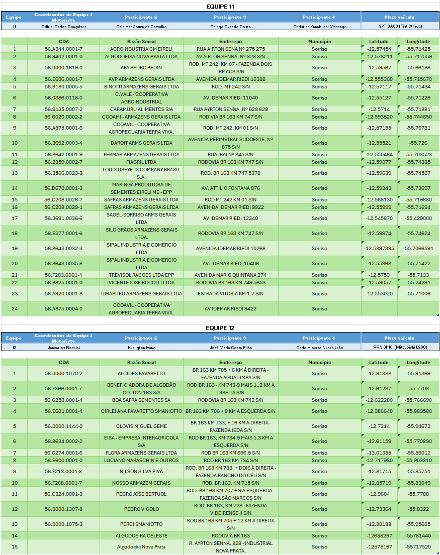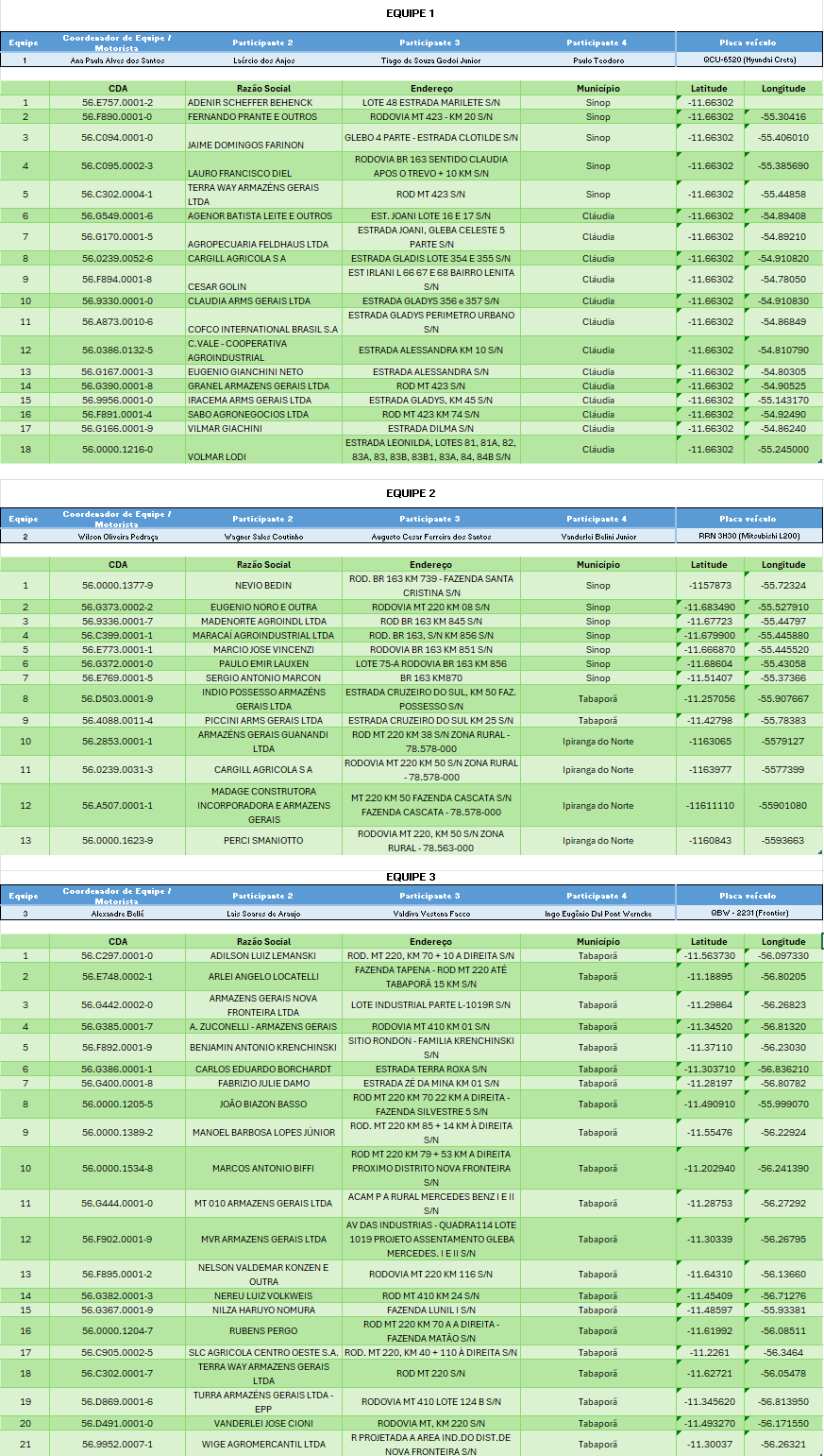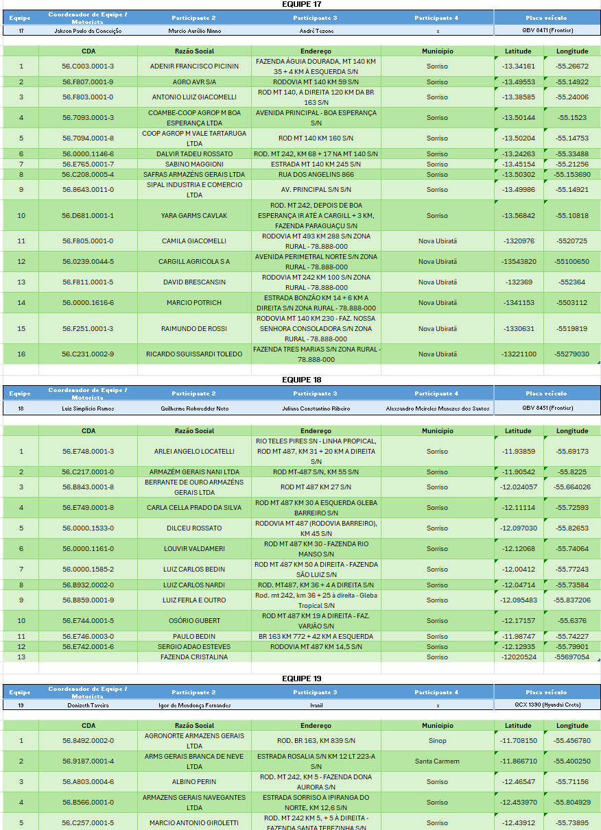 3.5.1. Planejamento Estratégico e Otimização de Rotas: Antes mesmo da execução em campo, o uso de dados georreferenciados permitiu identificar e mapear com precisão a localização de todos os 331 armazéns e estabelecimentos agrícolas na região. Isso possibilitou a criação de rotas otimizadas para as equipes de fiscalização, minimizando tempo de deslocamento, custos operacionais e maximizando o número de inspeções diárias. O Plano Tático Operacional foi construído sobre uma base geográfica sólida, garantindo que nenhum alvo fosse esquecido e que a cobertura fosse a mais completa possível.