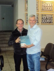 Carneiro Gomes recebeu das mãos do diretor da Associação Regional de Engenharia, Arquitetura e Agronomia de Ibaiti, engenheiro civil Antônio Vicenzi, o kit temático com os 18 cadernos instrutivos. “Com certeza iremos utilizar”, declarou o secretário que ainda destacou os temas de maior interesse do município, como saneamento, resíduos sólidos, iluminação pública, entre outros. “É uma parceria muito válida, uma vez que poderemos contar com o CREA-PR para a execução do nosso plano diretor”. O presidente da Câmara de Vereadores, Cláudio Gerolimo, também recebeu os cadernos temáticos e falou sobre a participação do CREA-PR na sessão. “Achei muito interessante por poder ajudar finalização do nosso plano diretor e em outras situações do município, como o trânsito, acessibilidade e até o layout da nossa cidade. Agora iremos manter contato para podermos efetivamente darmos início à parceria”, declarou.