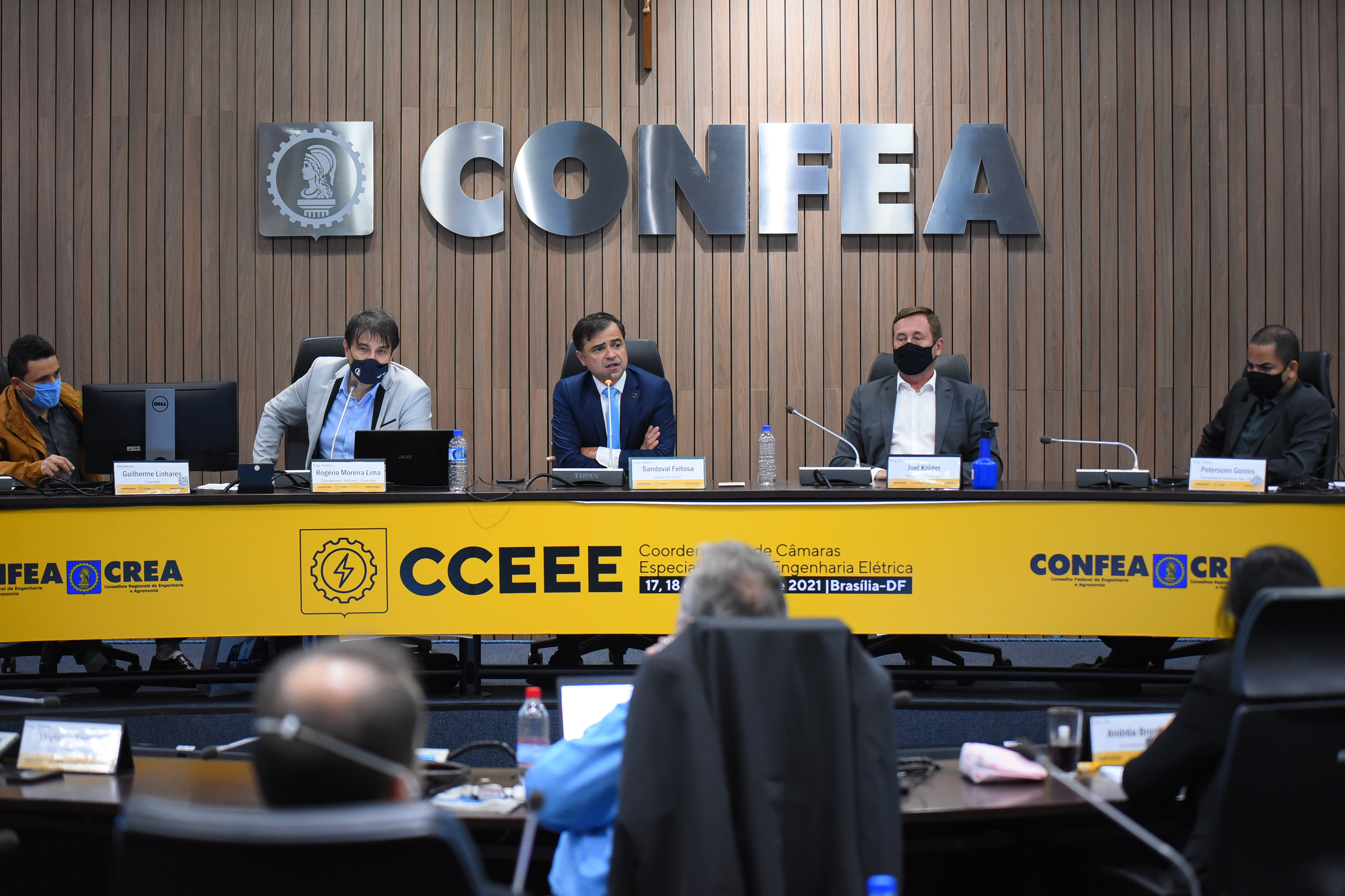 Os engenheiros eletricistas Rogério Moreira Lima Silva (Crea-MA) e Petersonn Caparrosa Silva (Crea-GO), respectivamente, coordenador titular e adjunto da CCEEE, comandaram os trabalhos que pela manhã contaram com a presença dos conselheiros federais, todos engenheiros eletricistas: Jorge Bitencourt, Daniel de Oliveira Sobrinho, José Miguel Lima e Modesto Ferreira dos Santos Filho.