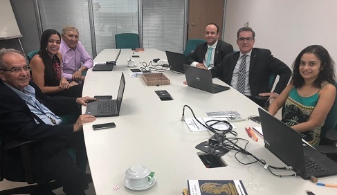 "(da esq. p/ dir.) Bosco, Silvia Girardi, que desenvolve o projeto do Livro do Mérito, Laércio, Zerisson, Laet e Mara Rúbia, assistente da comissão"