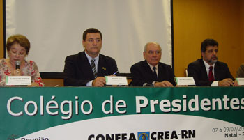 Ao ressaltar a importância do espírito ético nas esferas que compõem o Sistema Profissional, o presidente do Confea, eng. civil Wilson Lang, abriu a 3ª Reunião Ordinária do Colégio de Presidentes de 2004 na noite de ontem, 7 de julho. Realizado em Natal até o dia 9 deste mês, o encontro vai discutir a política administrativa e financeira, questões de registro, fiscalização, acervo técnico, legislação, entre outros assuntos.