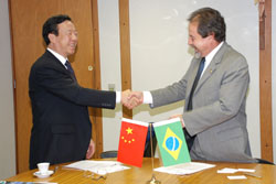 "Xiaoping e Túlio: intercâmbio científico e tecnológico"O Confea e a Associação de Beijing para Ciência e Tecnologia (BAST) assinaram ontem, 9 de julho, uma carta de intenções para cooperação de longo prazo. O objetivo é promover o intercâmbio científico e tecnológico entre a entidade chinesa e o Conselho.
