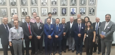 Liderada pelo vice-presidente do Confea, Edson Delgado, a comitiva do setor, que reuniu também os conselheiros federais Ronald do Monte Santos, Ricardo Araújo, Marcos Camoeiras, Zerisson de Oliveira Neto, Inarê Poeta, Annibal Margon, André Schuring e Carlos Laet, foi acompanhada pelas lideranças presentes na reunião realizada no Confea. A audiência pública foi conduzida pelo Secretário adjunto de Gestão, Renato Fenili, e teve ainda contribuições do diretor do Departamento de Normas, Wesley Lira, e da diretora de Logística, Andrea Anche.