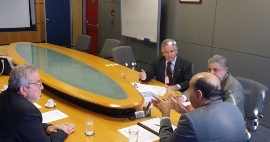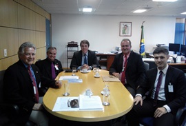 Desta vez, o chefe de gabinete, eng. civ. José Gilberto Campos, o assessor da Presidência, eng. eletric. João Oliva, o coordenador nacional da Engenharia Elétrica, eng. eletric. Alfredo Diniz (CCEEE), e o eng. telecom. Vinícius Marchese, da Federação Brasileira de Associações de Engenheiros (Febrae) representando o Colégio de Entidades Nacionais, foram recebidos pelo conselheiro diretor da Anatel Rodrigo Zerbone Loureiro, conforme havia sido agendado na reunião do dia 10.
