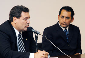O deputado Zezéu Ribeiro encerrou o evento agradecendo a presença e audiência de todos, informando que o objetivo do debate foi trazer a discussão do Nordeste para o âmbito nacional e que as perguntas que não foram respondidas por falta de tempo, poderiam ser encaminhadas para o e-mail sudene@camara.gov.br . "Da esquerda para direita: Wilson Lang (pres. do Confea) e o deputado João Paulo Cunha (pres. Câmara) - Dalmi Rodrigues"