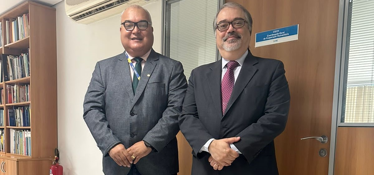 O diretor de Estratégia e Gestão do Confea, Genilson Pavão, reuniu-se com o ministro de carreira do Itamaraty José Solla, que ocupa o cargo de Coordenador-geral da Cooperação Humanitária na Agência Brasileira de Cooperação (ABC) para tratar de parceria internacional nas áreas de ajuda humanitária e mobilidade profissional.