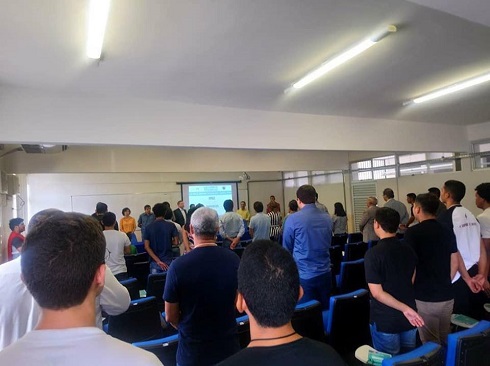 Acompanhado do presidente do Crea-AP, Edson Kuwahara; do conselheiro federal Laércio Aires; do diretor-geral da Mútua-AP, Fernando Van Erven Santos; do titular da Câmara Especializada de Engenharia Elétrica do Crea-AP, George Alex Cascaes Teixeira; e da vice-reitora Wilma Gomes Silva Monteiro, o presidente do Federal levou aos universitários e docentes informações sobre o histórico e o funcionamento do Sistema Confea/Crea, nesta segunda-feira (19).