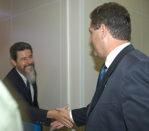 "Wilson Lang (pres. Confea) cumprimentando Gilney Viana (Sec. Nac. de Políticas para o Desenvolvimento Sustentável) - Dalmi Rodrigues"