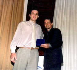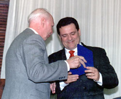 Brasília, quarta-feira, 4 de setembro de 2002. Homenagem (01)Engº Wilson Lang, presidente do Confea, durante solenidade "Foto 01"no auditório da Sociedade Mineira de Engenheiros em Belo Horizonte, recebe homenagem do Engº Celso Aprígio, presidente do IBAPE Nacional (Instituto Brasileiro de Avaliações e Perícias em Engenharia), pelas contribuições do Conselho para o desenvolvimento das atividades de engenharia no trabalho de avaliações e perícias em Minas Gerais.Premiação (02)Giovani Manoel da Silva, funcionário do Confea, vencedor do concurso de logomarcas do XII Congresso Brasileiro de Engenharia de Avaliações e Pericias, recebe prêmio do Eng. Alfredo Victor de Carvalho, Diretoria do IMAPE (Instituto Mineiro de Avaliações e Perícias de Engenharia). "Foto 02"Assessoria de Comunicação Social - Confea