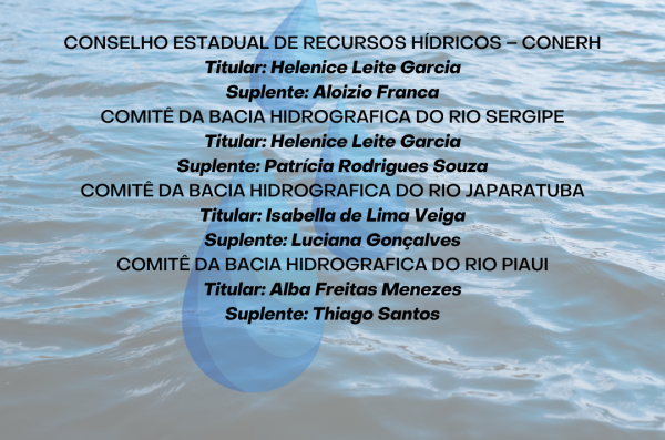 No Comitê do Rio Sergipe e no Conerh, o Crea-SE passa a ser representado pela engenharia química Helenice Leite Garcia, no Rio Japaratuba, a representante do Conselho é a engenheira civil, Isabella de Lima Veiga e do Rio Piauí, a engenheira agrônoma, Alba Freitas Menezes.