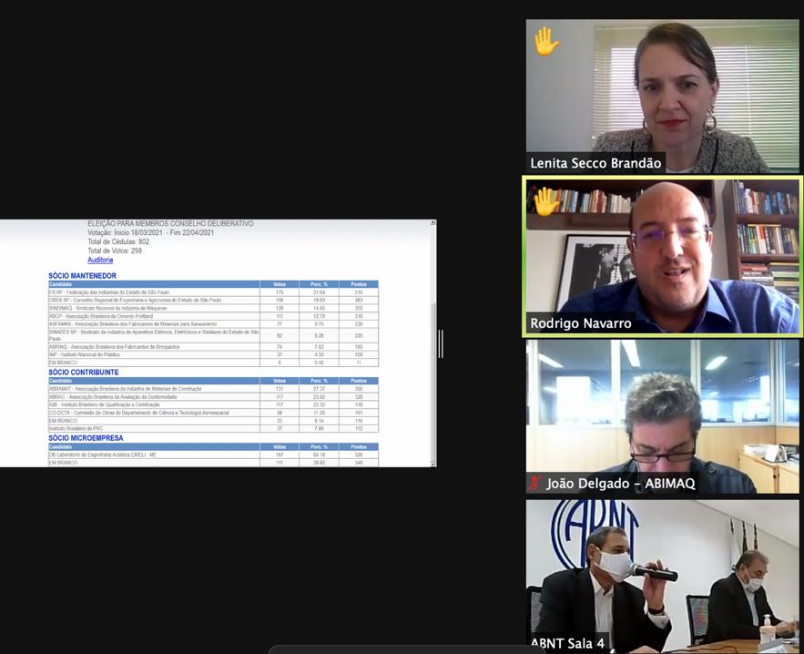 O mandato correspondente à eleição cujo resultado foi divulgado hoje se inicia em agosto. 56 integrantes compõem o Conselho Deliberativo da ABNT, entre titulares e suplentes. Atualmente, desses, 13 são mulheres. A partir de agosto, Lenita e Fabiana se somarão a essa representação. O Conselho Deliberativo tem por objetivo fixar as diretrizes gerais da ABNT, entre elas, a política de normalização técnica.