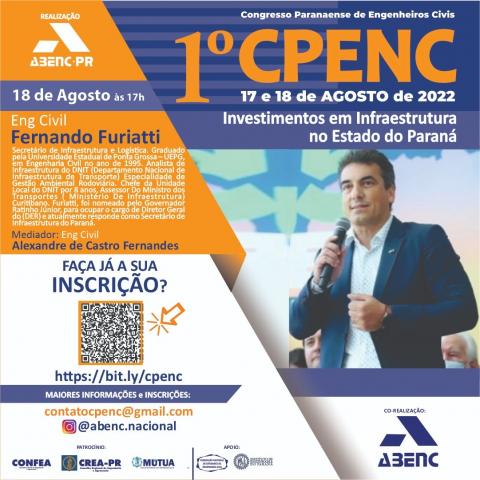 O Conselho Federal de Engenharia e Agronomia (Confea) patrocina o 1⁰ Congresso Paranaense de Engenheiros Civis (Cpenc), que será realizado durante os dias 17 e 18 de agosto (quarta e quinta-feira), na sede do Instituto de Engenharia do Paraná (IEP), em Curitiba.