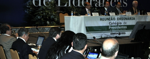 Na sala principal do Moderno Centro de Eventos de Brasília, estiveram reunidos os Presidentes dos 27 CREAs, o Presidente do CONFEA e o Presidente da MÚTUA na Reunião Ordinária do CP - Colégio de Presidentes, um dos mais importantes órgãos do Sistema.