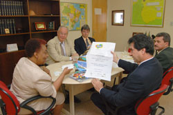 Ela conheceu parte do material de divulgação, levado na reunião pelo gerente de relações institucionais do Confea, Renè Bayma. A embaixadora receberá uma quantidade maior e se comprometeu a ajudar na divulgação do evento em seu país, tanto na área governamental, como em empresas, organizações e universidades.