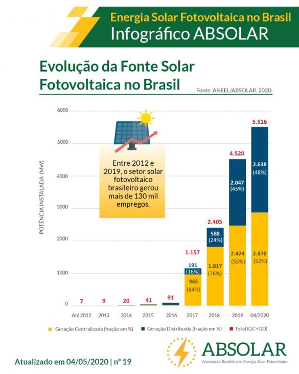 Na avaliação do presidente executivo da Absolar, esse caminho será possível se governos federal e estaduais adotarem a energia renovável como ferramenta estratégica para recuperação da economia brasileira, adotando políticas e programas específicos. “É uma possibilidade importante de geração de emprego e renda rápida e distribuída nos municípios porque as pessoas podem gerar sua própria energia em casa, no pequeno comércio, na indústria, nos prédios públicos ou em propriedades rurais”, considera o mestre em Engenharia Elétrica voltada para Energias Renováveis e doutor em Engenharia de Materiais no segmento de Energia Solar, Rodrigo Lopes Sauaia.