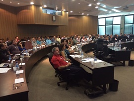 O Seminário Temático: Gerência da Fiscalização 2015 segue até esta terça-feira (9). Hoje (8) à tarde, serão apresentados dois casos de sucesso dos Regionais. O Conselho Regional da Bahia irá compartilhar com os agentes fiscais um exemplo de fiscalização na área química, enquanto, simultaneamente, o Crea-PR irá explicar aos gerentes como funciona o planejamento e a avaliação de resultados no Regional.