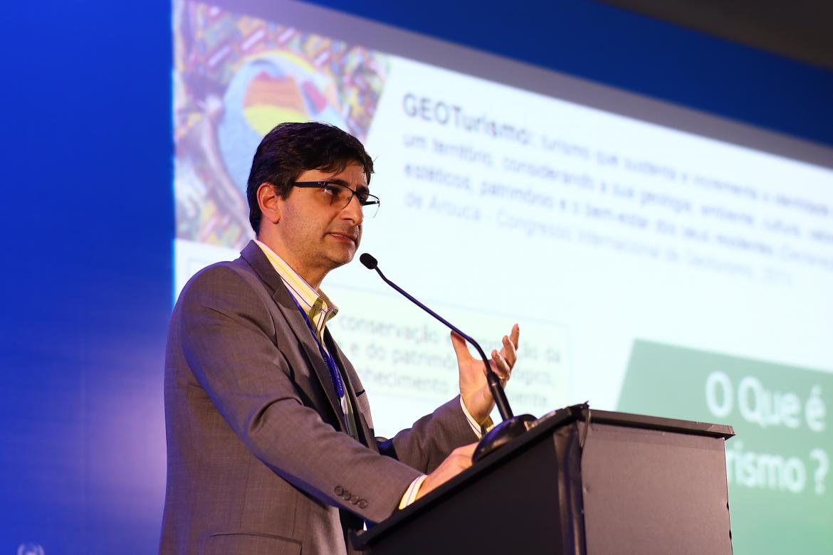 O segundo palestrante do painel foi o geol. Fábio Reis, professor da Universidade Estadual Paulista Júlio de Mesquita Filho (Unesp) e presidente da Federação Brasileira de Geólogos (Febrageo), com a palestra “Riscos geológicos em áreas turísticas: caso de Capitólio”. Na apresentação o docente relatou os estudos, do Instituto de Geociências e Ciências Exatas da Unesp, do qual ele faz parte, e o estudo sobre Fernando de Noronha (PE). Foram apresentados de forma técnica as informações sobre os estudos, as formas de redução de danos e, por fim, uma metodologia de verificação de riscos, elaborada pelo grupo de estudos. “Não podemos fechar os cânions de Capitólio; se fizermos isso, deveríamos fechar todos os outros cânions do Brasil, várias estradas, áreas em serras e acabar com as visitações em cavernas”, observou o geólogo.