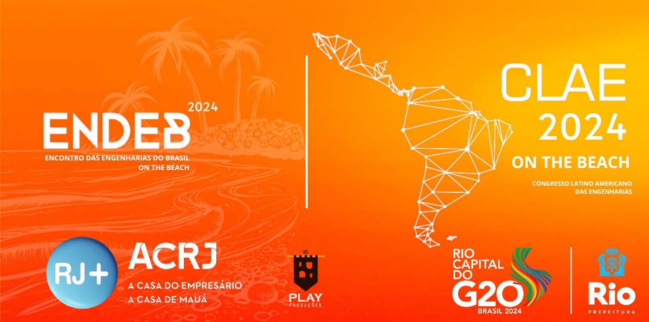 Em sua terceira e quarta edições, respectivamente, em formato inédito de podcast, o 3° Congresso Latino-Americano das Engenharias (CLAE) e o 4° Encontro das Engenharias do Brasil (ENDEB) de 2024 abordarão o tema: "Engenharia para um Futuro Sustentável na Era Digital: Integração de Infraestrutura Inteligente, ESG, 5G e Cibersegurança em Resposta à Força-Tarefa da Mudança do Clima do G20". O evento ocorrerá no dia 15 de agosto, das 08h às 18h, no estúdio do Centro de Negócios RJ+ da Associação Comercial do Rio de Janeiro, com transmissão online pelos canais da Play Produções e RJ+ Centro de Negócios da ACRJ.