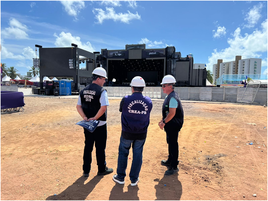 Na primeira semana de 2024, o Crea da Paraíba colocou a equipe de fiscais em campo para inspecionar a montagem do Fest Verão Paraíba e do Verão Lovina, que acontecem neste mês em Cabedelo, Região Metropolitana de João Pessoa (PB). Durante a ação preventiva, os agentes conferiram se palco, sonorização, iluminação, grupo gerador, parte elétrica, camarote, banheiros químicos, painel de LED, entre outros itens, estavam de acordo com as normas técnicas de segurança.