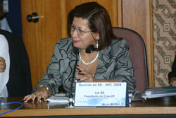A Presidente do Crea-DF, eng. civil Lia Sá, coordenadora do Fórum da Mulher, apresentou o novo site que traz um histórico da participação das mulheres, os principais eventos para mulheres da área tecnológica em todo o mundo e ainda os contatos das organizadoras da programação para as mulheres na WEC 2008.