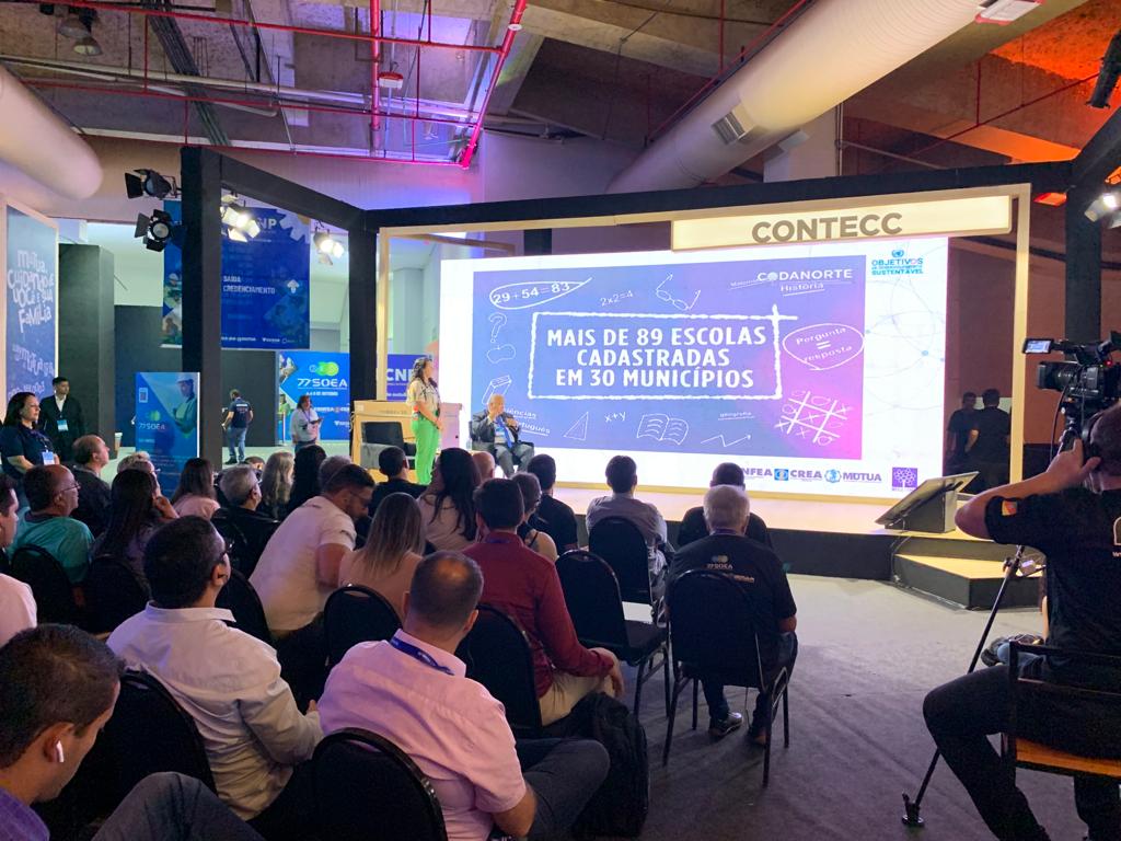 Na tarde desta quarta-feira (5/10), na Ilha Contecc, os profissionais participantes da 77ª Semana Oficial da Engenharia e da Agronomia (Soea) assistiram ao painel sobre soluções consorciadas na gestão de resíduos sólidos, apresentada pela eng. amb. Patrícia Aparecida Soares Mendes, gerente do Departamento de Saneamento da Codanorte. O debate teve como moderador o eng. eletric. Genilson Pavão, conselheiro federal.