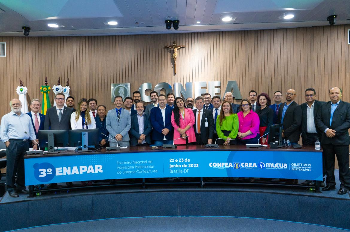 Em uma semana de intensa agenda legislativa, teve início em Brasília (DF), nesta quinta-feira (22), o 3º Encontro Nacional de Assessoria Parlamentar do Sistema Confea/Crea (Enapar). Na abertura do evento, o coordenador do Colégio de Presidentes, eng. agr. Raimundo Ulisses de Oliveira Filho, ressaltou a evolução das assessorias parlamentares. “A Apar deixou de ser apenas informativa para se tornar proativa, despertando o interesse dos políticos”, analisou.  O assessor parlamentar José Maria Soares destacou o papel fundamental do presidente do Confea, eng. civ. Joel Krüger, em fortalecer a estrutura da Apar.