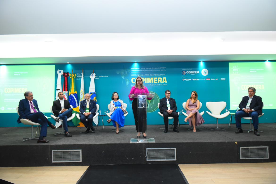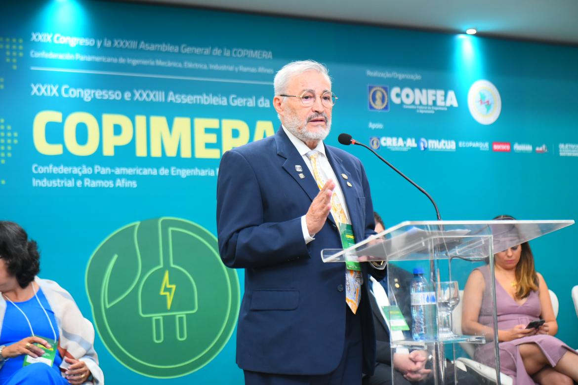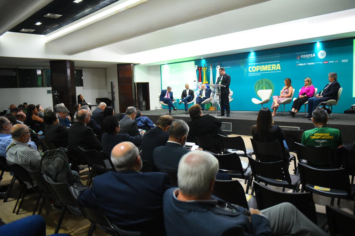 Estudantes, profissionais e gestores públicos das áreas de Engenharia Mecânica, Elétrica, Industrial e correlatos lotaram o auditório do Hotel Ritz Lagoa da Anta em Maceió (AL) na noite desta segunda-feira (5/6), Dia do Meio Ambiente, para assistir à solenidade de abertura do XXIX Congresso da Confederação Pan-Americana de Engenharia Mecânica, Elétrica e Ramos Afins (Copimera), realizado até quarta-feira (7/6). “Este congresso é um marco nos nossos esforços na busca do desenvolvimento da Engenharia”, afirmou o vice-presidente do Confea, eng. eletric. Evânio Nicoleit, ao abrir os trabalhos, representando o presidente do Conselho Federal, eng. civ. Joel Krüger.