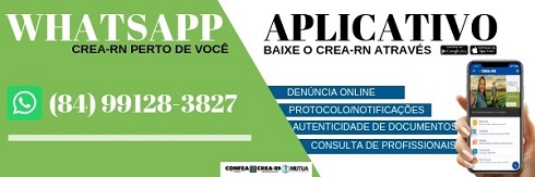 O Conselho Regional de Engenharia e Agronomia do Rio Grande do Norte lançou o Aplicativo Crea-RN, no município de Mossoró, distante 281,4 km de Natal. Uma ferramenta que pode ser utilizada pela população e profissionais do Sistema Confea/Crea para denunciar o exercício ilegal da Engenharia, Agronomia e Geociências. Na presença de profissionais da região, a presidente do Crea-RN, Ana Adalgisa Dias Paulino, explicou os detalhes de como o profissional e o cidadão podem utilizar a ferramenta que já está disponível de forma gratuita nas plataformas Google Play (Android) e Apple Store (iOS).