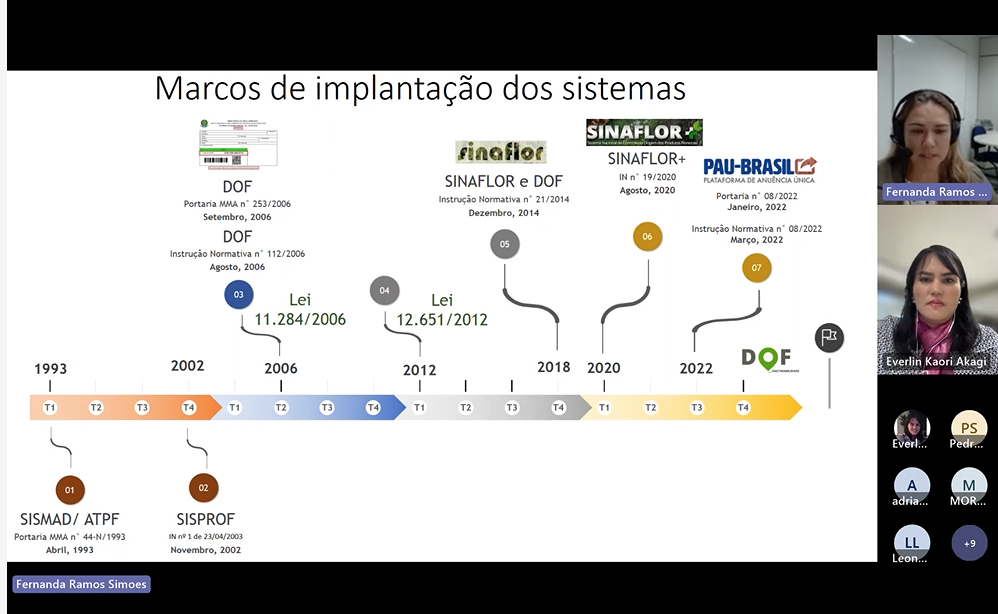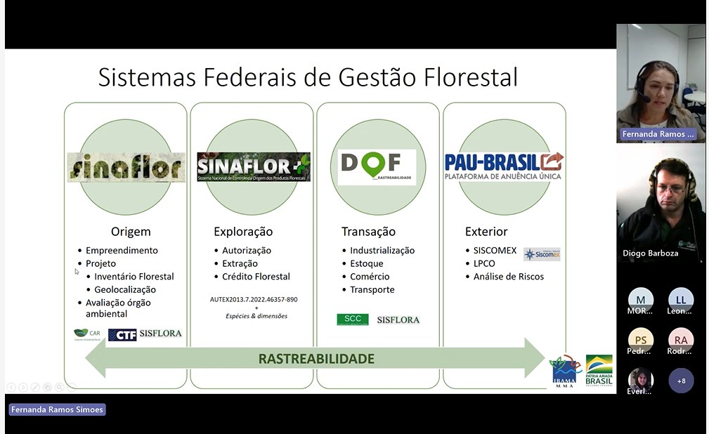 De acordo com a coordenadora-geral de Gestão e Monitoramento do Uso da Flora do Ibama, Fernanda Simões, atualmente há um arcabouço de sistemas que faz o controle de ponta a ponta da gestão de recursos florestais, desde a hora que a árvore é explorada na floresta até o momento em que ela sai da cadeia produtiva. Entre as ferramentas eletrônicas, estão o Documento de Origem Florestal (DOF), a plataforma Pau-Brasil e o Sinaflor. Esse último ganha destaque dentro do Acordo de Cooperação Técnica (ACT) firmado entre Confea e Ibama, em 2022, que visa melhorar as atividades florestais.