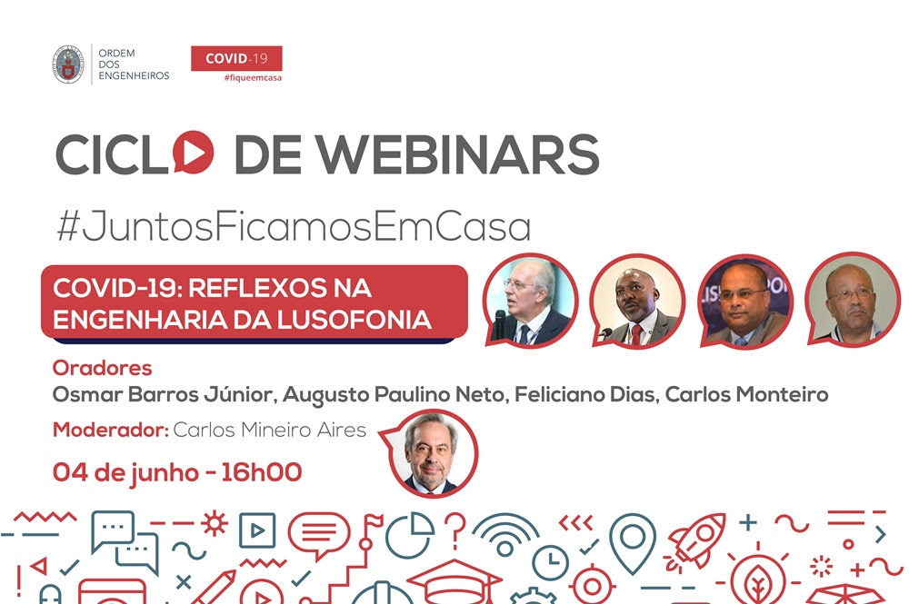 Na quinta-feira (04), às 12h (horário de Brasília, 16h em Lisboa) será realizado o webinar “Covid-19: Reflexos na Engenharia da lusofonia”. O debate on-line, promovido pela Ordem dos Engenheiros de Portugal (OEP), faz parte de um ciclo de webinars que abordam diversos temas relacionados ao contexto mundial neste momento de pandemia de coronavírus.