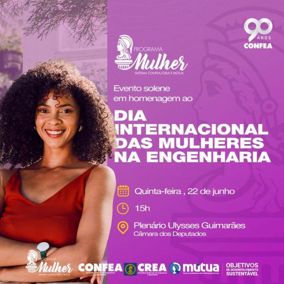 Em apoio à defesa e valorização das profissões, o Sistema Confea/Crea e Mútua marcará presença ativa nas comemorações do Dia Internacional das Mulheres na Engenharia. A solenidade será na quinta-feira (22/6), às 9h, no Plenário Ulysses Guimarães da Câmara dos Deputados.