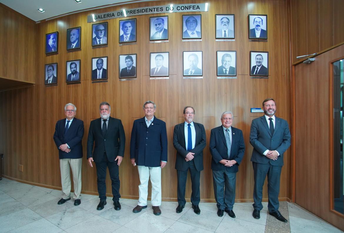 A quinta-feira (11 de maio) tornou-se um dia histórico para o Sistema Confea/Crea. Em um encontro inédito, o atual presidente do Confea, eng. civ. Joel Krüger, reuniu os cinco presidentes de gestões anteriores para discutir políticas públicas para o Brasil. Participaram do encontro o eng. eletric. Frederico Moreira Bussinger (1988-1993); o eng. civ. Henrique Luduvice (1994-1999); o eng. civ. Wilson Lang (2000-2005); o eng. civ. Marcos Túlio de Melo (2006-2011); e o eng. civ. José Tadeu da Silva (2012-2017).