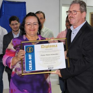 Cinco pessoas foram homenageadas com os “diplomas de honra ao mérito”, como reconhecimento pela atuação na construção da inspetoria de Sapezal que contribuirá para o desenvolvimento do Estado de Mato Grosso. Em seu discurso, o presidente do Crea-MT, João Pedro Valente, lembrou que um conjunto muito maior de pessoas merece ser agraciado, mas é impossível nominar a todas.