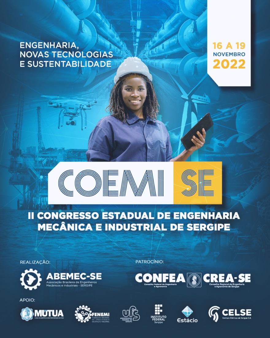 Com o apoio do Confea, Crea-SE e Mútua, Aracaju vai sediar no período de 16 a 19 deste mês de novembro o II Congresso Estadual de Engenharia Mecânica e Industrial de Sergipe (COEMI-SE). O evento traz para debate e conhecimento o processo de transformação digital na indústria, a transição energética brasileira e o papel da engenharia no contexto da sustentabilidade. Promovido pela Associação dos Engenheiros Mecânicos e Industriais de Sergipe (ABEMEC–SE), o Congresso deverá reunir durante os quatro dias de atividades, cerca de 500 profissionais, além da comunidade acadêmica e técnico-científica.