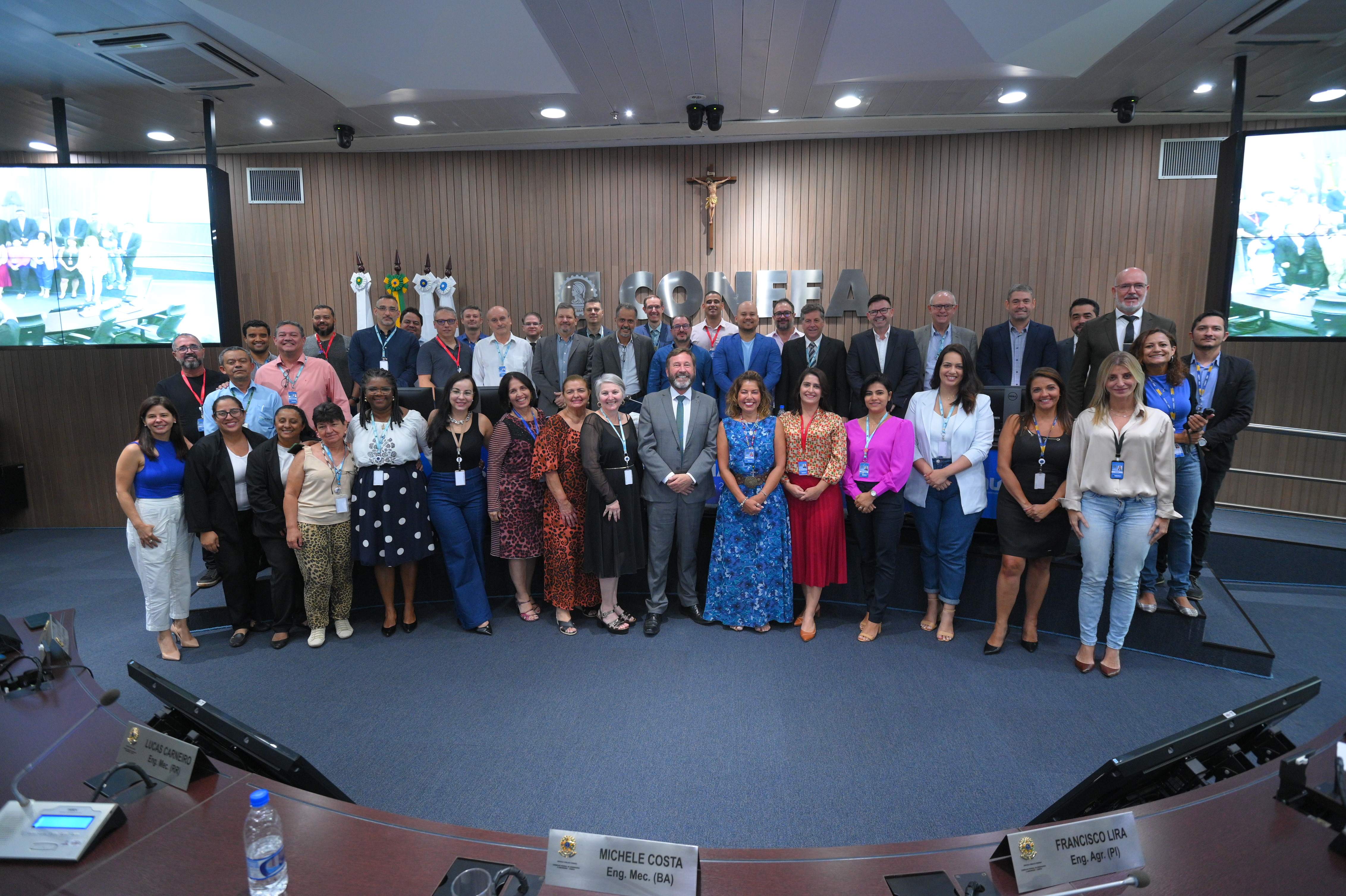 “Saio muito feliz. Foram seis anos maravilhosos, de encontros, de reencontros, porque a vida é feita de ciclos. Tenho a feliz oportunidade de poder continuar neste plenário, ao lado do conselheiro Osmar. É uma mudança de posição, vou sair da mesa diretiva e vou estar na terceira fila da bancada, no lugar dos novatos. Vamos estar alinhados com os 27 presidentes de Crea que foram eleitos e com o presidente Vinicius Marchese. Estaremos dando continuidade ao trabalho que iniciamos, agora sob a gestão do presidente Vinicius. Vamos fazer uma belíssima caminhada, juntos com os pares e juntos com os funcionários, em prol das nossas profissões”, disse, destacando seus laços de família e despedindo-se com uma sessão de fotos.