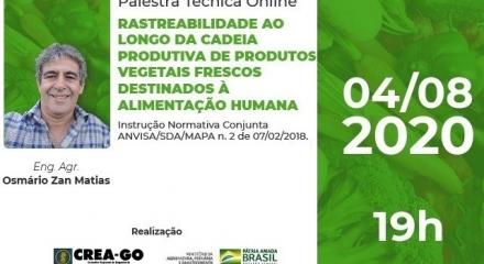 Palestra técnica online será ministrada pelo Eng. Agr. Osmário Zan Matias