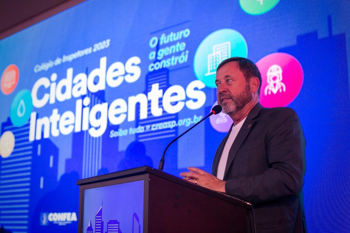Diante de mais de 180 municípios representados por meio de inspetores, agentes fiscais, tecnólogos, engenheiros, agrônomos e geocientistas, o presidente do Confea, eng. civ. Joel Krüger, destaca o papel das inspetorias na 3º Etapa do Colégio de Inspetores em São José do Rio Preto. O evento, que promove uma série de debates para propor soluções em busca de cidades inteligentes, aconteceu nos dias 19 e 20 de maio.