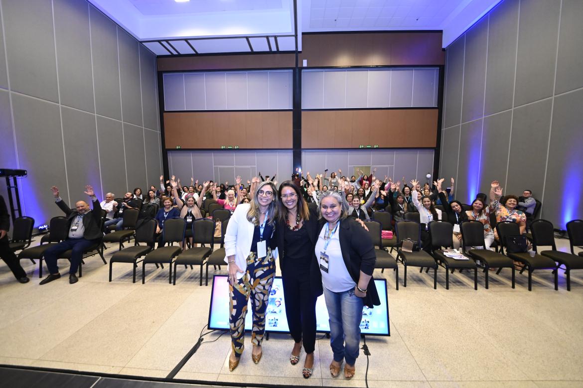 No decorrer dos três dias do 12º Encontro de Líderes, o Programa Mulher esteve com seu espaço sempre lotado, contando inclusive com a presença da ministra da Ciência e Tecnologia e Inovação, eng. eletric. Luciana Santos. O evento também foi prestigiado pelas presidentes de Creas Rosa Tenório (AL), Carmem Nardino (AC) e Adriana Falconery (PA). As representantes dos comitês gestores do Programa Mulher nos estados compartilharam suas experiências com todo o público presente. As profissionais reforçaram a importância do fortalecimento do Programa, inclusive com o apoio dos presidentes de Creas, além da criação de uma rede de apoio e atividades para além do Sistema Confea/Crea. Na ocasião, o gerente de Relações Institucionais, eng. amb. Renato Muzzolon Junior, apresentou a Cartilha do Programa Mulher 2023, que traz dados atualizados, reconhecimento do trabalhos das precursoras e perspectivas para o futuro.