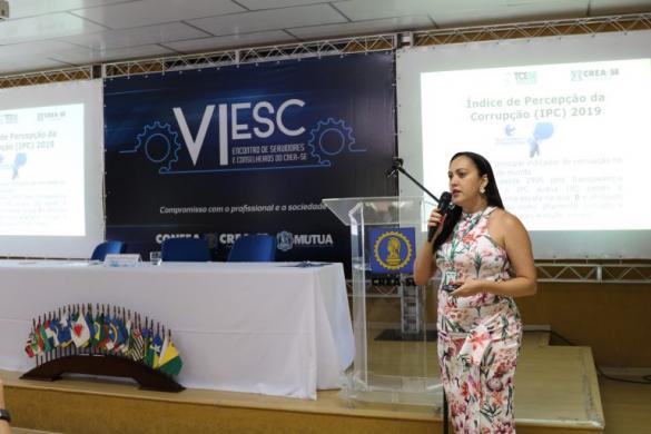 Antes de abrir o ciclo de palestras do evento, a auditora de Controle Externo do Tribunal de Contas de Sergipe (TCE-SE), Shara Christina Lessa parabenizou o Crea-SE pela clareza e objetividade das informações disponibilizadas e, também, pela iniciativa de contribuir para o aprofundamento da discussão sobre transparência e controle social.