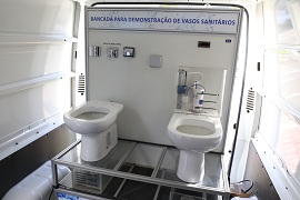 O Laboratório Móvel de Uso Consciente da Água contém bancadas funcionais para demonstração e treinamento sobre o funcionamento de variados modelos de equipamentos modernos de utilização direta nos pontos de consumo, além de contar com dispositivos para o entendimento do processo de medição do volume de água consumido nas edificações.