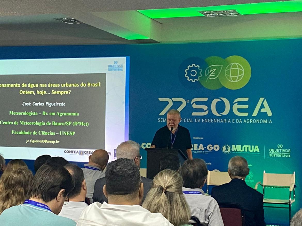 O presidente do Conselho Deliberativo da Sociedade Brasileira de Meteorologia (Sbmet), meteorol. Rômulo da Silveira Paz, foi o responsável pela mediação do painel sobre Meteorologia e Política Ambiental, apresentado na pauta da 77ª Semana Oficial da Engenharia e da Agronomia (Soea), realizada de 4 a 6 de outubro, em Goiânia.